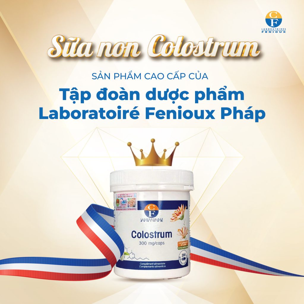Sữa non Colostrum là sản phẩm uy tín đến từ Pháp, được sản xuất bởi Laboratoires Fenioux – tập đoàn có bề dày kinh nghiệm trong lĩnh vực dinh dưỡng và sức khỏe. Sản phẩm nổi bật với hàm lượng kháng thể IgG tự nhiên cao, cùng các yếu tố tăng trưởng, vitamin và khoáng chất thiết yếu, hỗ trợ tăng cường sức đề kháng và phát triển toàn diện… Sữa non Colostrum có thể sử dụng cho hầu hết mọi độ tuổi kể cả trẻ em lẫn người lớn. Sản phẩm nằm trong danh sách những sữa chất lượng cao và được ưa chuộng trên toàn thế giới.
